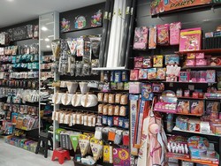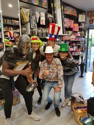 wigs, hats, contact-lenses, makeup,jokes and pranks, balloons and helium, decoration, firecrackers and devices …